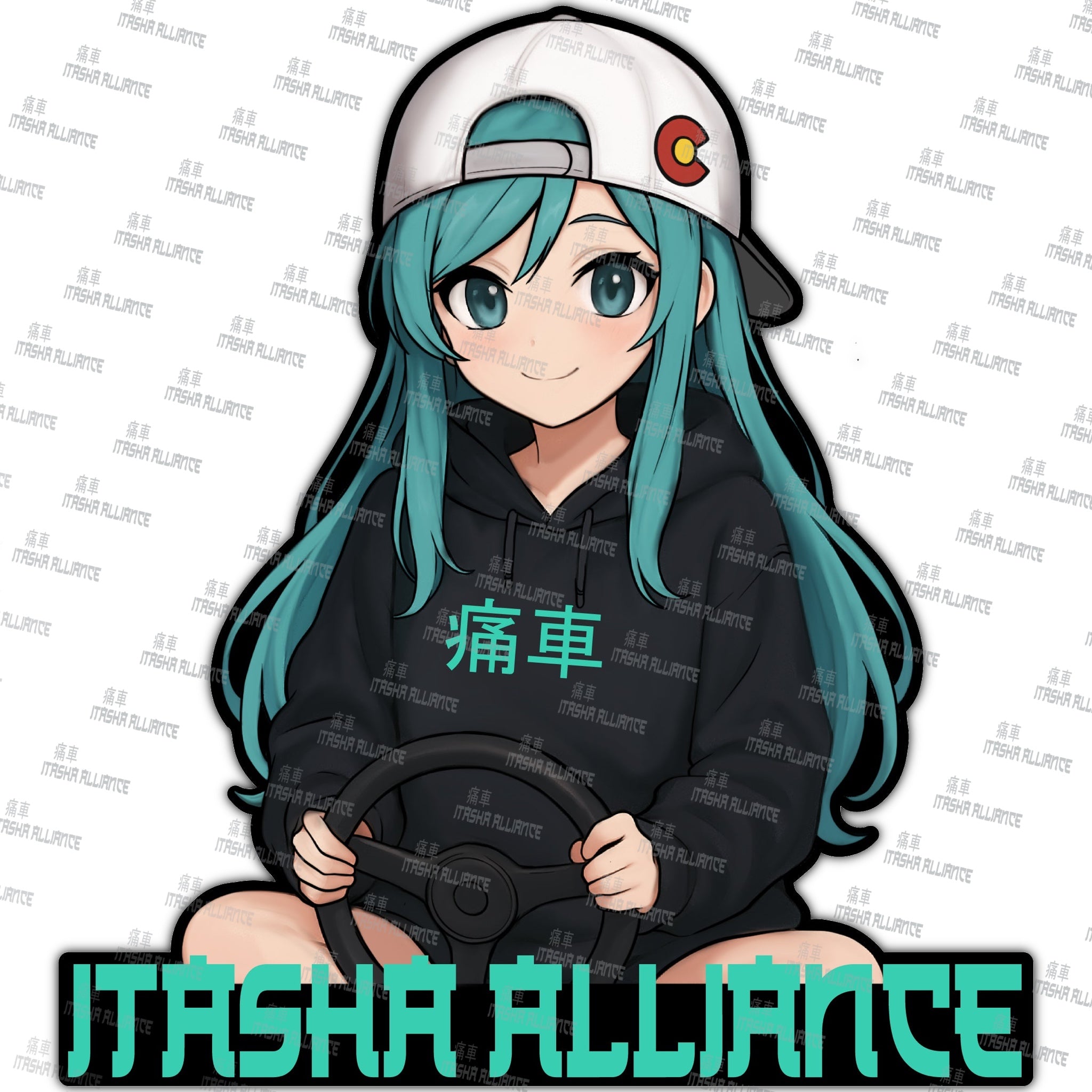 CO Itasha Sticker - Mascot Holding Wheel